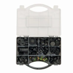 Comprend rondelles plates 3/8″, 1/2″, 5/8″ et 3/4″, ‘delta’ 1/2″ et 3/4″, ‘tantofex’ 1/2″, clapets percés/dômes complets 1/2″, 3/4″, clapets percés SuperTap type A 1/2″, 3/4″, type D 1/2″.