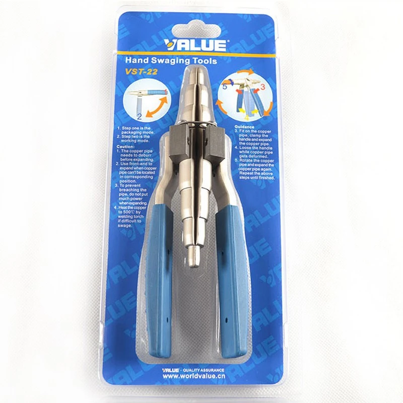 Pince à emboiture frigoriste multi-tailles de marque Value pour réaliser des emboitures sur tubes de cuivre frigorifique diamètre 3/8“, 1/2“, 5/8“, 3/4“, 7/8“.