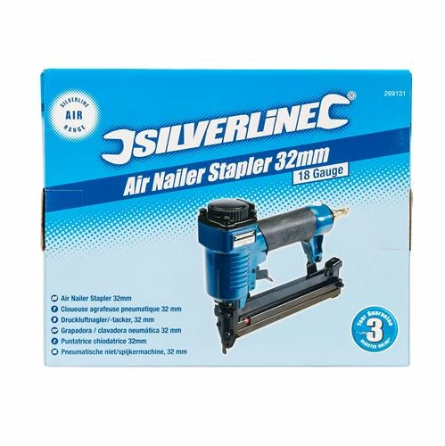 | Agrafeuse-cloueuse pneumatique 32 mm Calibre 18 Silverline 269131 EAN 5055058148674 |