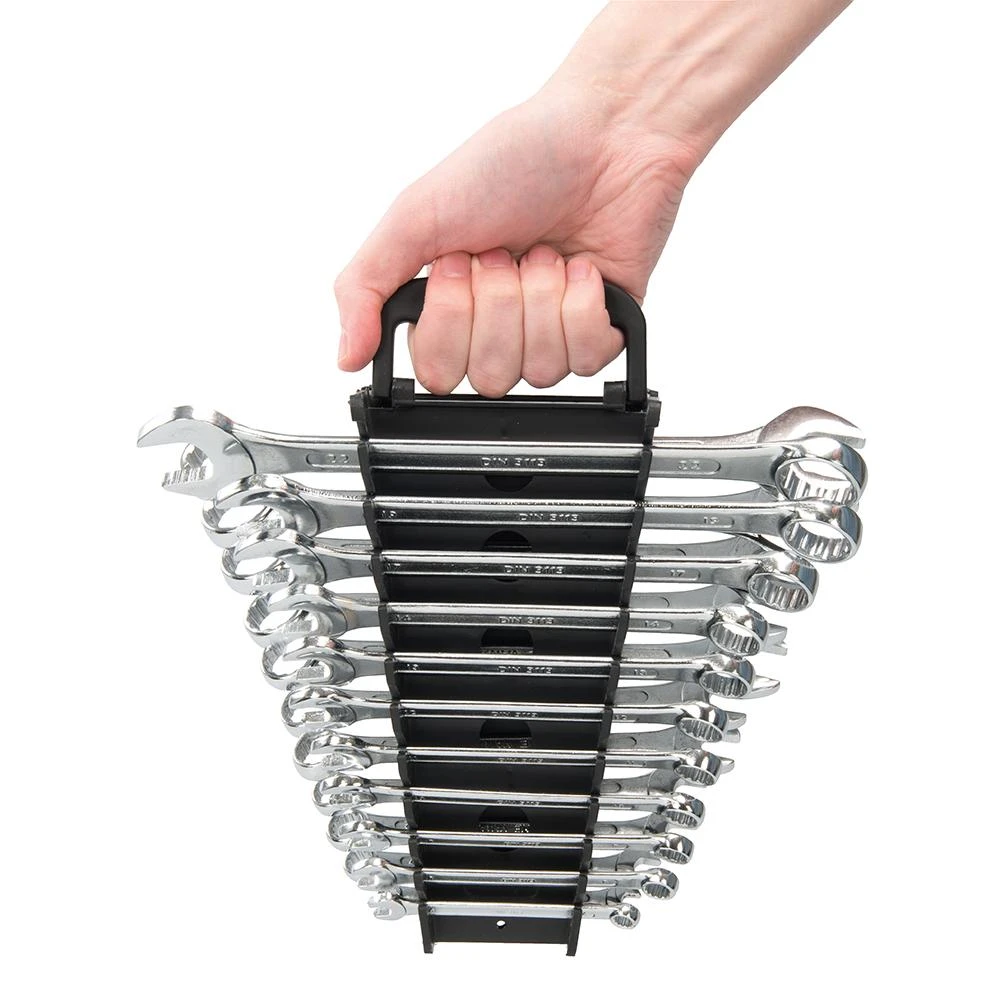 En acier chrome-vanadium matricé trempé et revenu à faces polies et manches à embrasure. Tailles métriques : 6, 8, 9, 10, 11, 12, 13, 14, 17, 19 et 22 mm. Tailles AF : 1/4″, 5/16″, 3/8″, 7/16″, 1/2″, 9/16″, 5/8″, 11/16″, 3/4″, 13/16” et 7/8″.