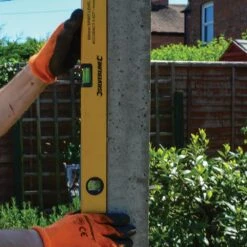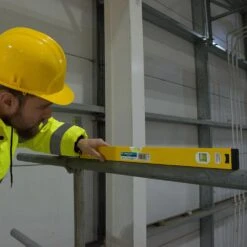 Niveau robuste en aluminium extrudé de 1,1 mm d’épaisseur avec faces supérieures et inférieures fraisées. Largeur de la section 51 mm. Fioles de contrôle 45°, 90° et 180°. Précision : 1 mm/m.
